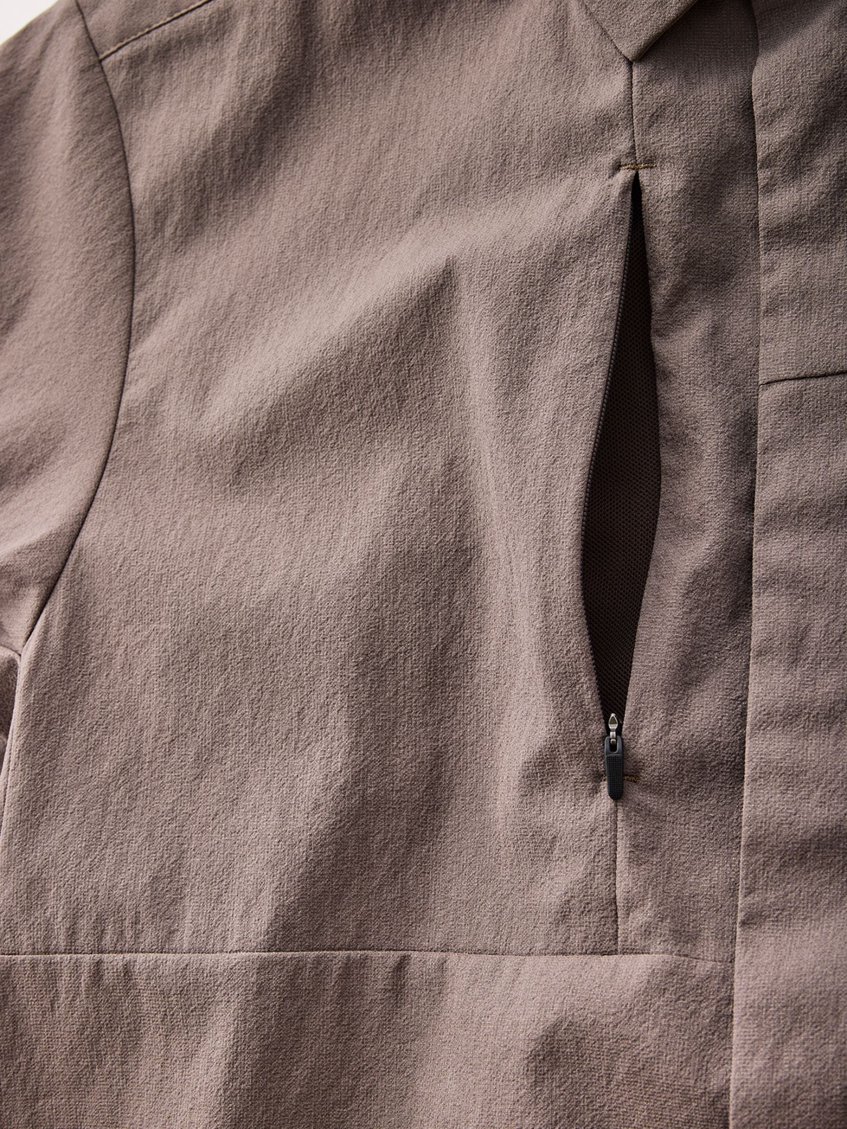 右胸には容量が大きいジッパー付きポケット。内側をメッ シュにしてベンチレーションを兼ねる。 -