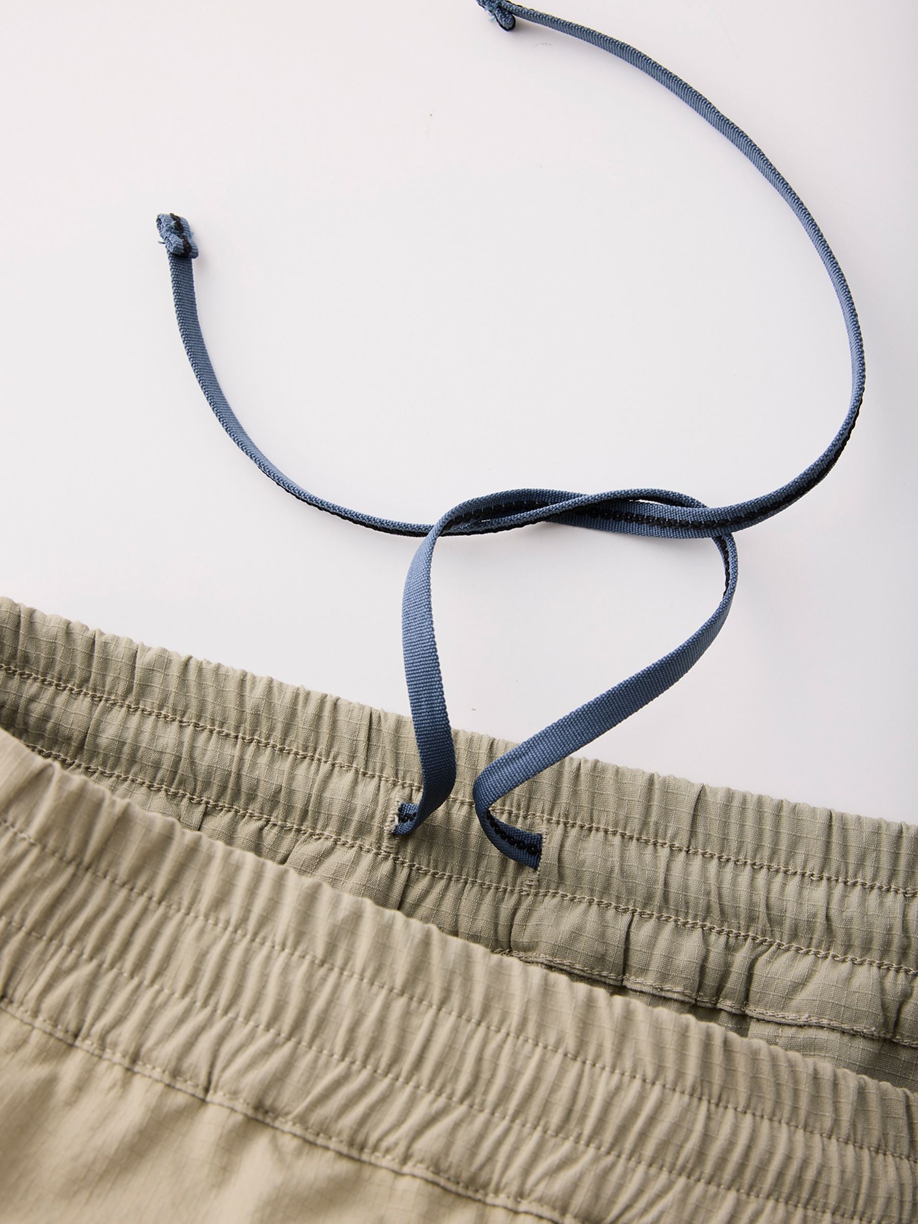 ウェストはギャザーでフィットさせ、内側のコードで微調整可能。シリコンの滑り止めで解けにくい。 -