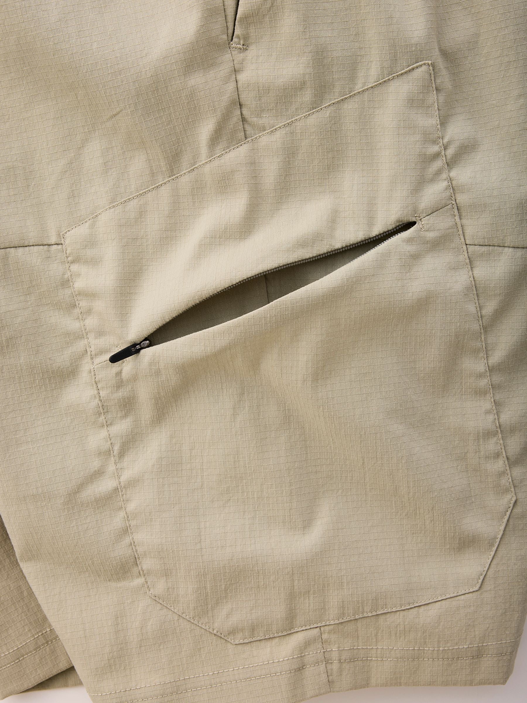 右大腿部のジップポケット。コンシールタイプを使い、すっきりしたデザイン。 -