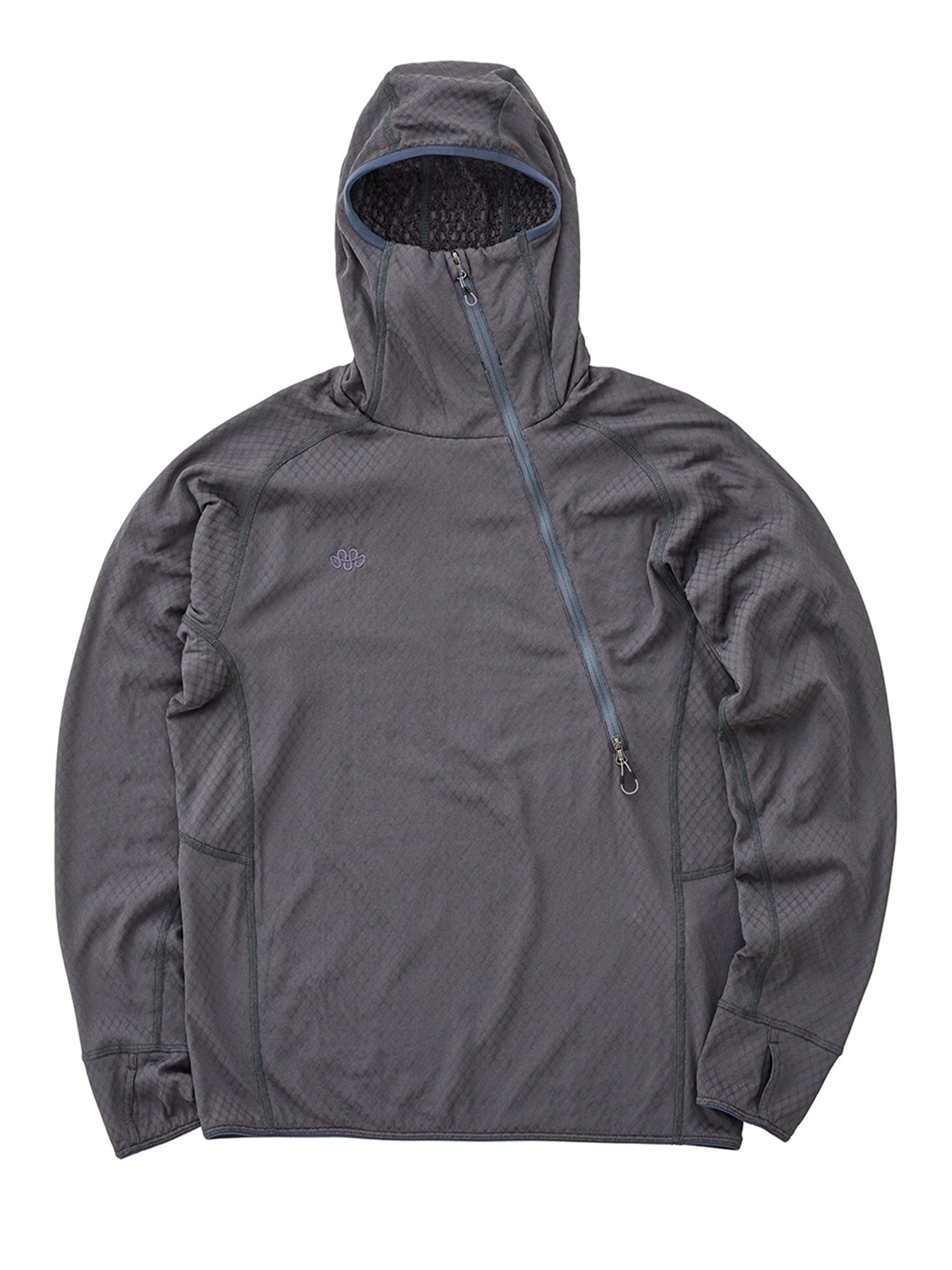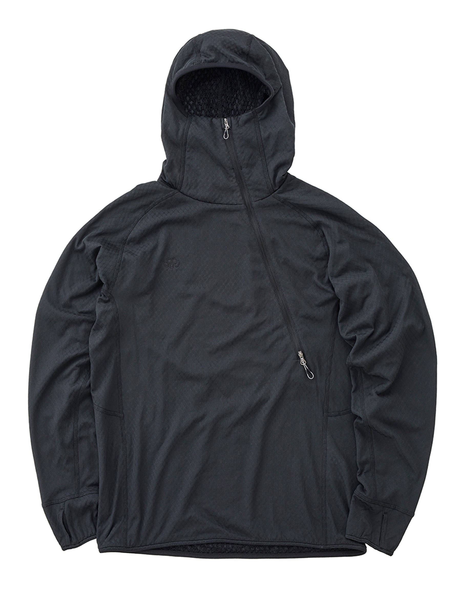 袖口にはサムアンカーを備え、手首にしっかりフィットし、外気の侵入を防ぎます。フードはフィット感に優れ、顔周りまでしっかり覆うことで、頭部や首周りからの体温放出を軽減します。
