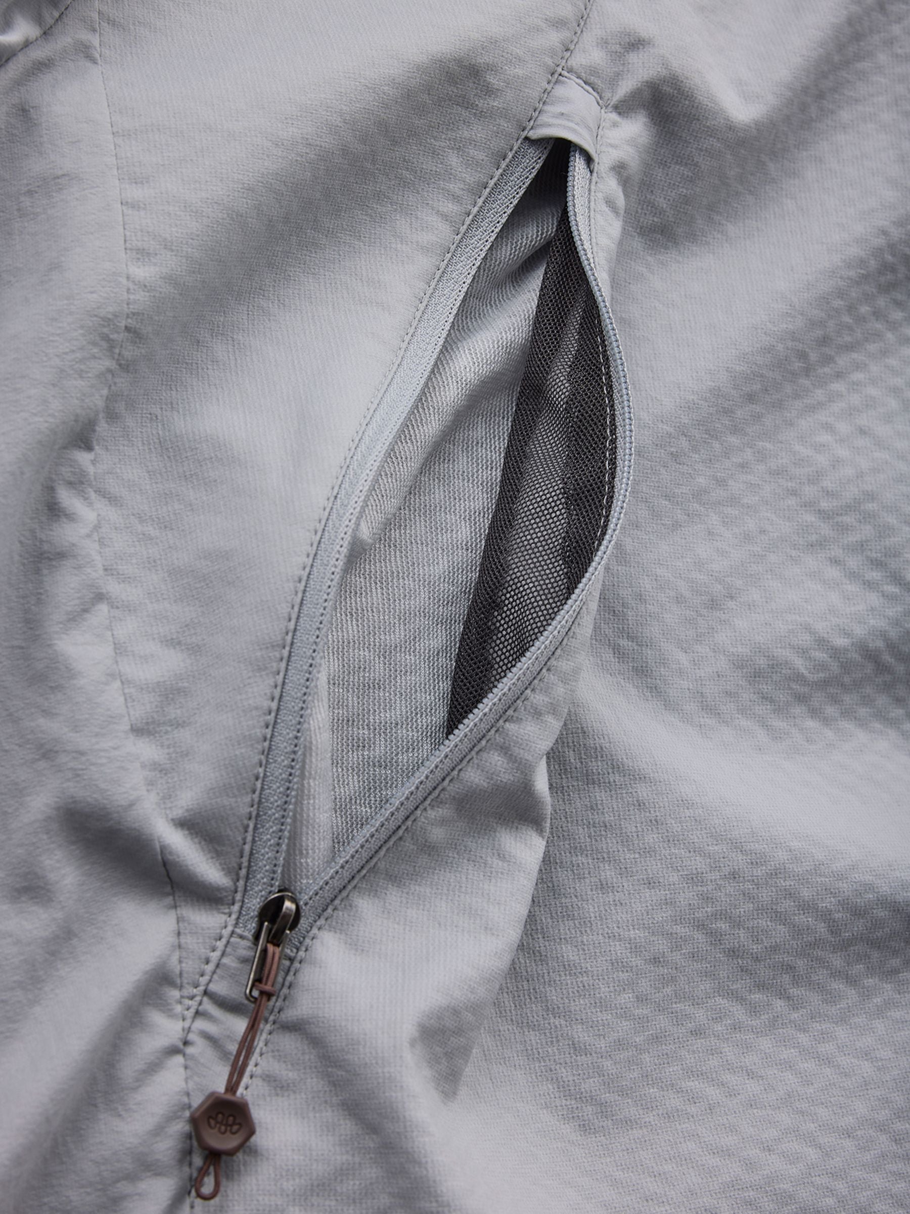 TSURUGI JACKETから継承したフロントのジッパーは、 プルオーバーでも着脱しやすく、上下から開けるダブル スライダーによって、ベンチレーションとしても効果的。 -