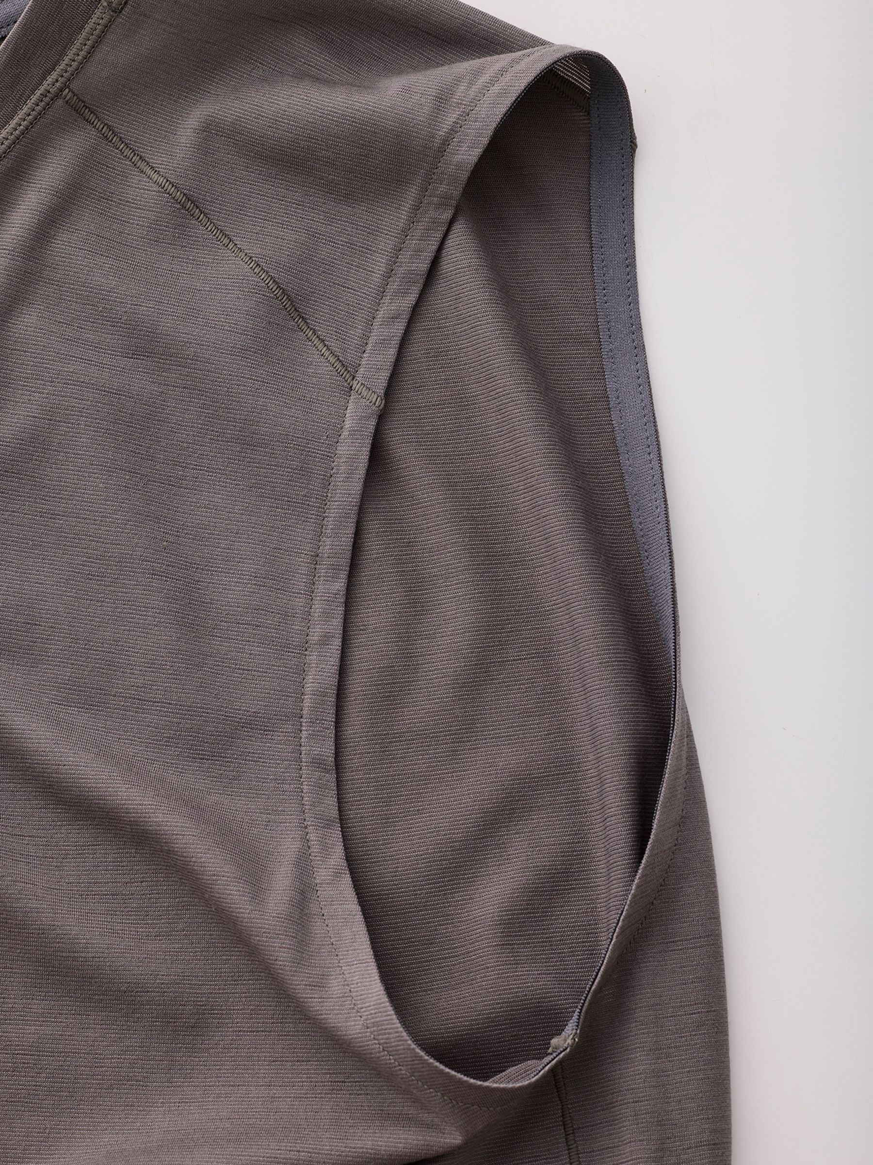 肩の縫製ラインはオフセットさせてバックパックを背負ったときの擦れを軽減。また、下着などに使われる凹凸が少ないM縫いを採用。特殊な縫製で、肌当たりはさらにソフト。